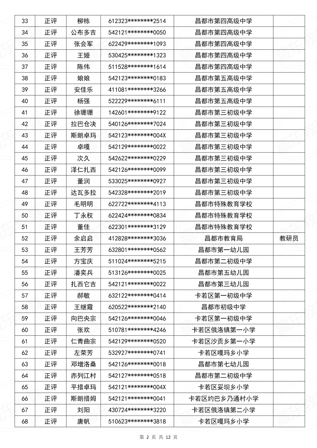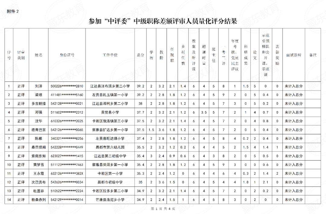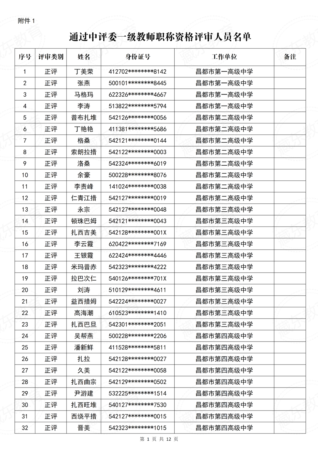 昌都市中小学教师系列中级职称评审委员会2025年度中级专业技术职务资格评审结果公示