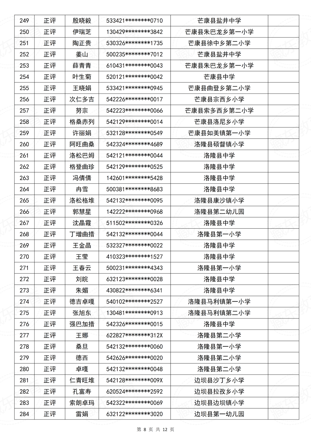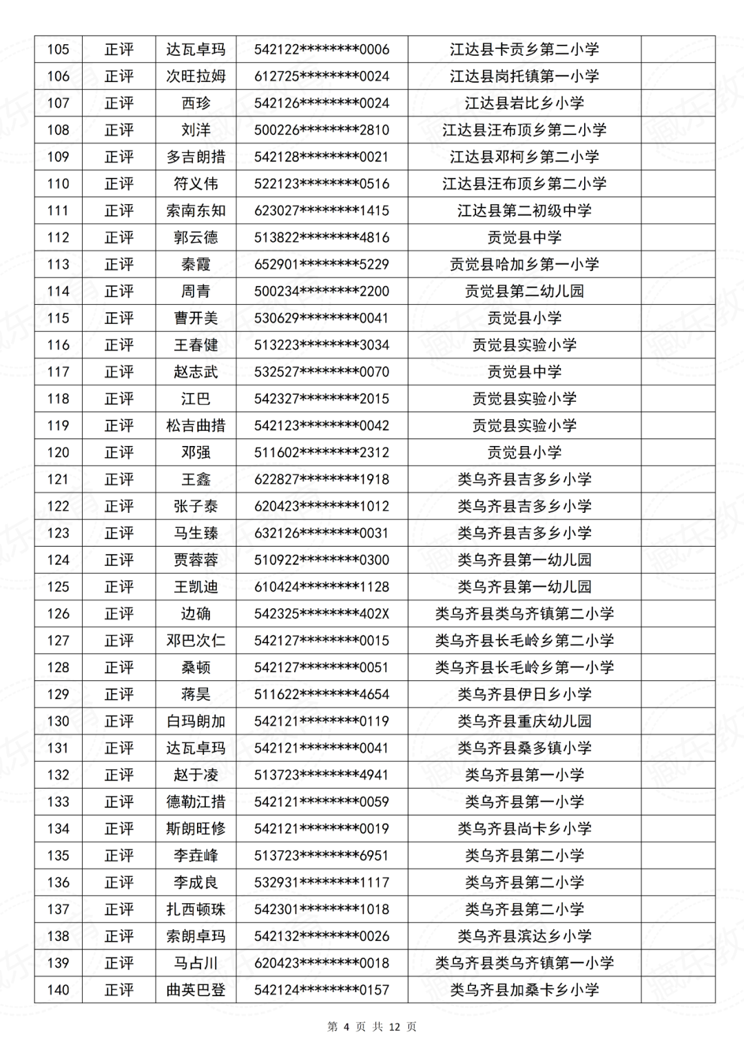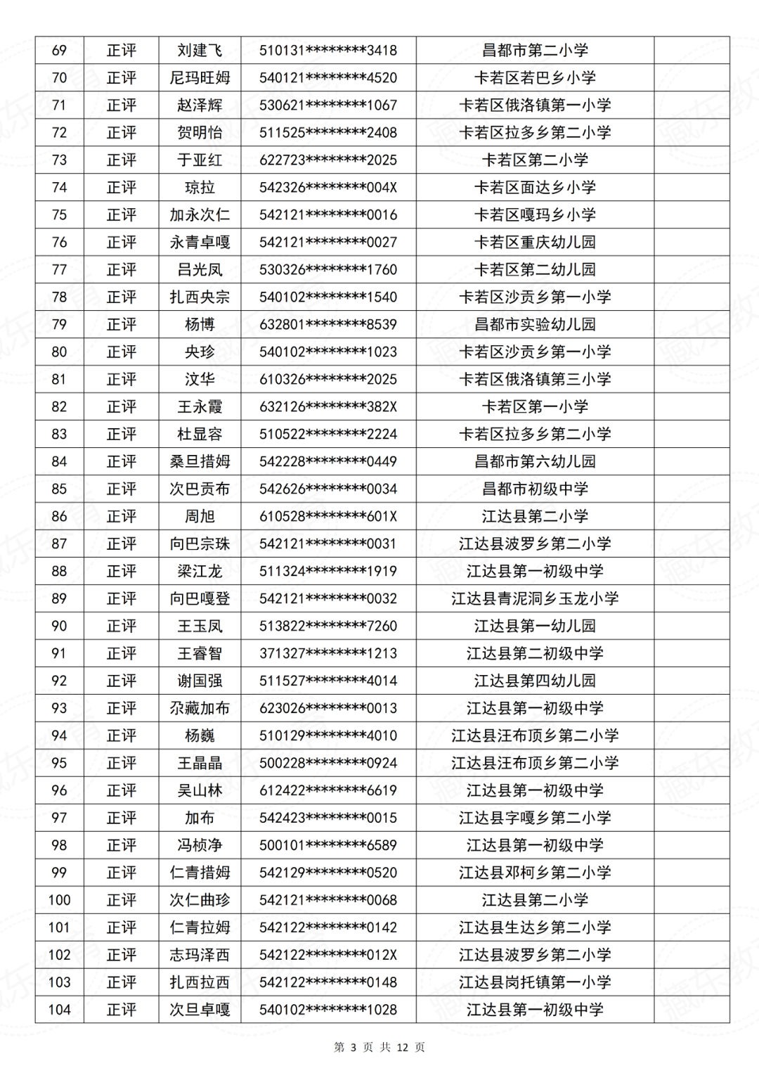 昌都市中小学教师系列中级职称评审委员会2025年度中级专业技术职务资格评审结果公示