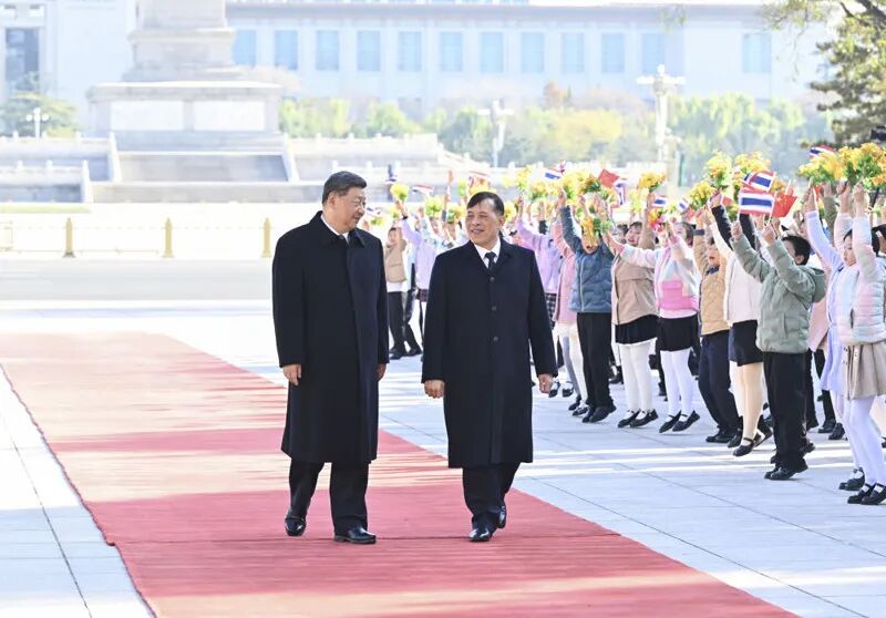 11月14日上午,国家主席习近平在北京人民大会堂会见来华进行国事访问的泰国国王哇集拉隆功。习近平表示,哇集拉隆功国王将中国作为首个国事访问的大国,成为中泰建交以来首位访华的泰国国王,充分体现了对中泰关系的高度重视和“中泰一家亲”的深厚情谊。习近平对诗丽吉王太后不久前逝世表示哀悼,指出泰国王室同中国渊源深厚,为促进中泰友好作出重要贡献,中方对此深表赞赏。今年是中泰建交50周年暨“中泰友谊金色50年”。建交半个世纪以来,面对国际风云变幻,中泰两国始终并肩携手、守望相助,是真正的好亲戚、好朋友、好伙伴。站在新的历史起点,我愿同哇集拉隆功国王引领中泰命运共同体建设在下一个50年取得更大进展,共同书写中泰友好的新篇章。习近平指出,中共二十届四中全会审议通过“十五五”规划建议,将聚焦推动高质量发展,扩大高水平开放。泰国也处在国家发展振兴的关键阶段。中方愿同泰方加强战略对接,稳步推进中泰铁路等大项目合作,扩大进口泰国优质农产品,拓展人工智能、数字经济、航空航天等新兴领域合作,让两国人民从中泰合作中获得更多实利。要推动两国文化交融,促进人文交流,让两国民众越走越亲。中方愿积极支持泰国王室公益项目,加强减贫经验交流,助力泰国改善民生。哇集拉隆功表示,很高兴对中国进行国事访问。多年后再次来到中国,中国发生巨大变化,展现出现代化中国和美丽中国的崭新面貌,祝贺中国经济社会发展取得重大成就。泰中两国亲密友好,人民交往密切,互利合作广泛深入。泰中合作是兄弟间的合作。泰方愿积极学习借鉴中国发展经验,扩大各领域对华合作,增进人文交流,让泰中友好更加深入人心。会见前,习近平和夫人彭丽媛在人民大会堂东门外广场为哇集拉隆功和王后素提达举行欢迎仪式。哇集拉隆功抵达时,礼兵列队致敬。习近平同哇集拉隆功登上检阅台,军乐团奏中国国歌和泰国颂圣歌,天安门广场鸣放礼炮21响。哇集拉隆功在习近平陪同下检阅中国人民解放军仪仗队,并观看分列式。王毅参加上述活动。(记者:冯歆然、邵艺博 摄影:谢环驰、李响、申宏)