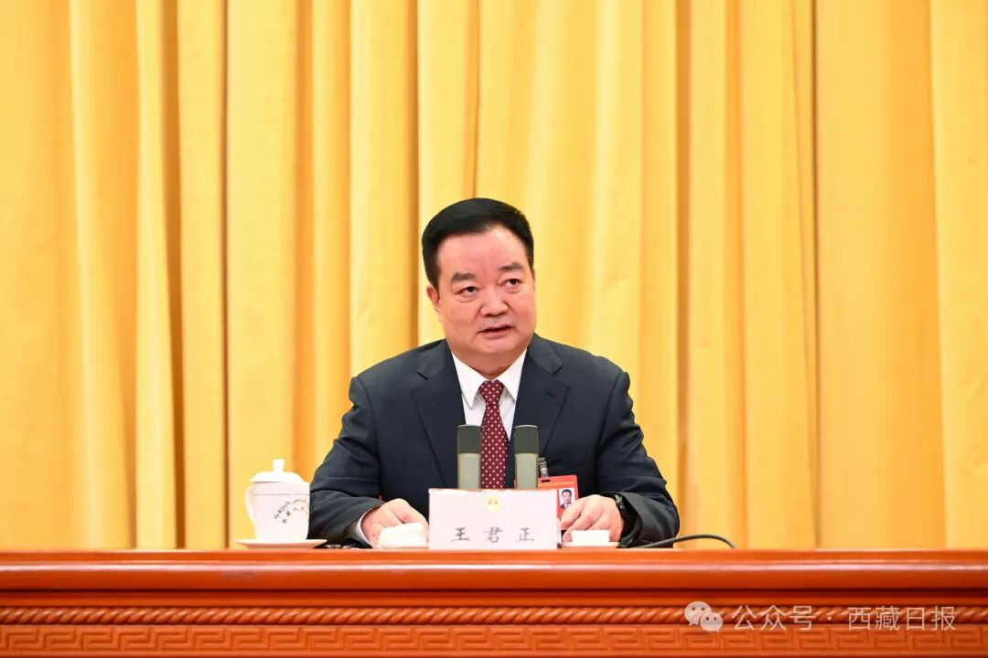 王君正指出,2025年是西藏发展历程中极不平凡的一年,习近平总书记率中央代表团出席自治区成立60周年庆祝活动,听取自治区党委和政府工作汇报并发表重要讲话,极大增强了全区各族干部群众共建中华民族共同体、书写美丽西藏新篇章的信心和决心。自治区党委坚决贯彻落实习近平总书记关于西藏工作的重要指示和新时代党的治藏方略,持续抓好“四件大事”落实,顺利完成“十四五”规划主要目标,社会主义现代化新西藏建设迈出坚实步伐,社会大局继续保持和谐稳定,经济高质量发展势头良好,民生福祉不断增进,生态安全屏障日益巩固,边境地区加快建设,作风建设成效明显,呈现出一派欣欣向荣的发展景象。