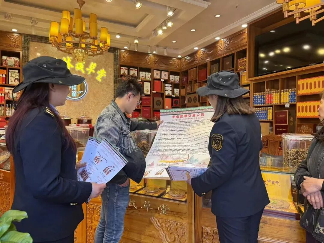 图为昌都市市场监督管理局开展虫草市场专项检查。